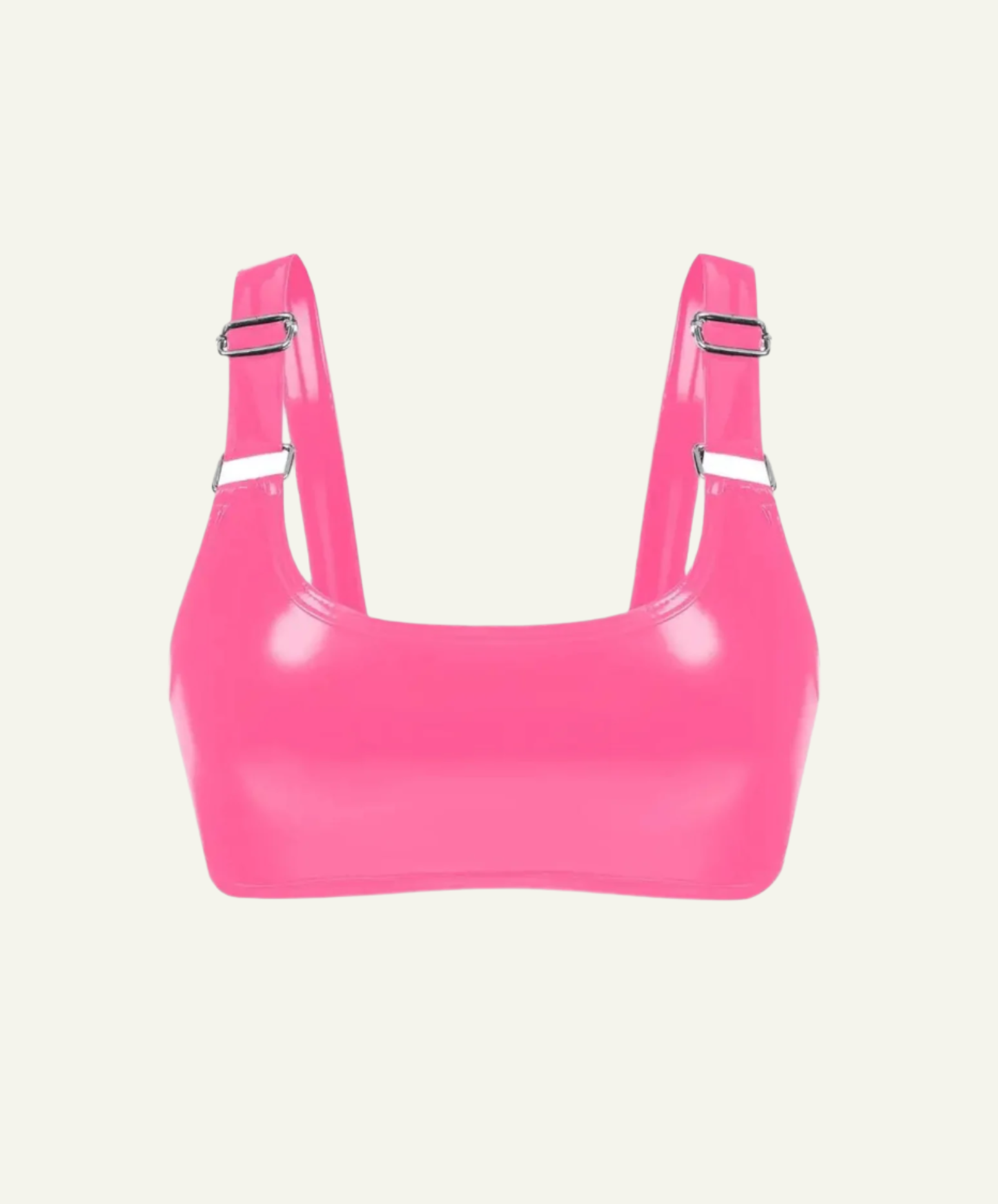 Unleash your inner Barbie with this Latex Cami Top. Perfect for kinky parties, raves, or creating a bold outfit. Embrace your sexy, sex-positive self with this playful and daring top.